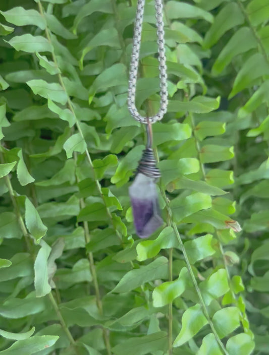🔮 “Midnight Clarity” – Amethyst Point Pendant in Dark Copper Wire
