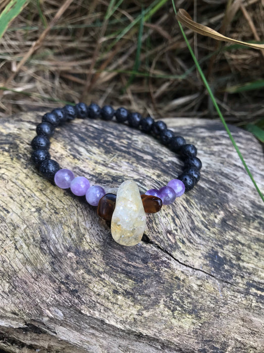 Amber, Amethyst & Lava Rock “Asthma” Bracelet