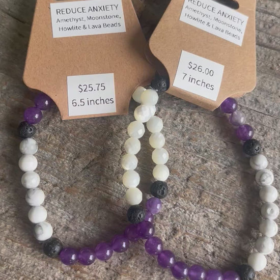 “Reduce Anxiety” Stretchy Bracelet with Amethyst, Howlite, Moonstone, & Lava Beads