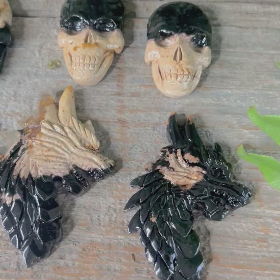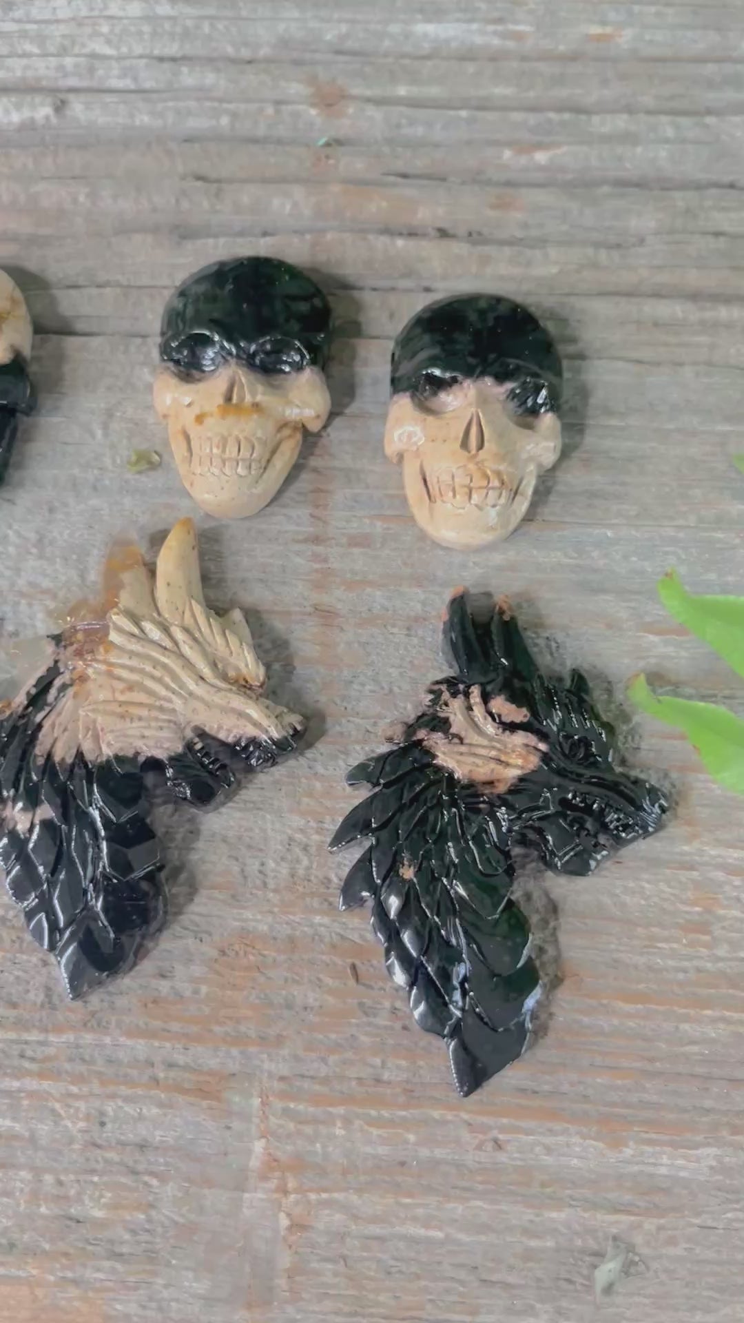 Each skull carving has unique fossilized patterns, making every pendant one of a kind. Once you choose your wire color, your custom pendant will be carefully handcrafted with attention to both detail and energy flow.