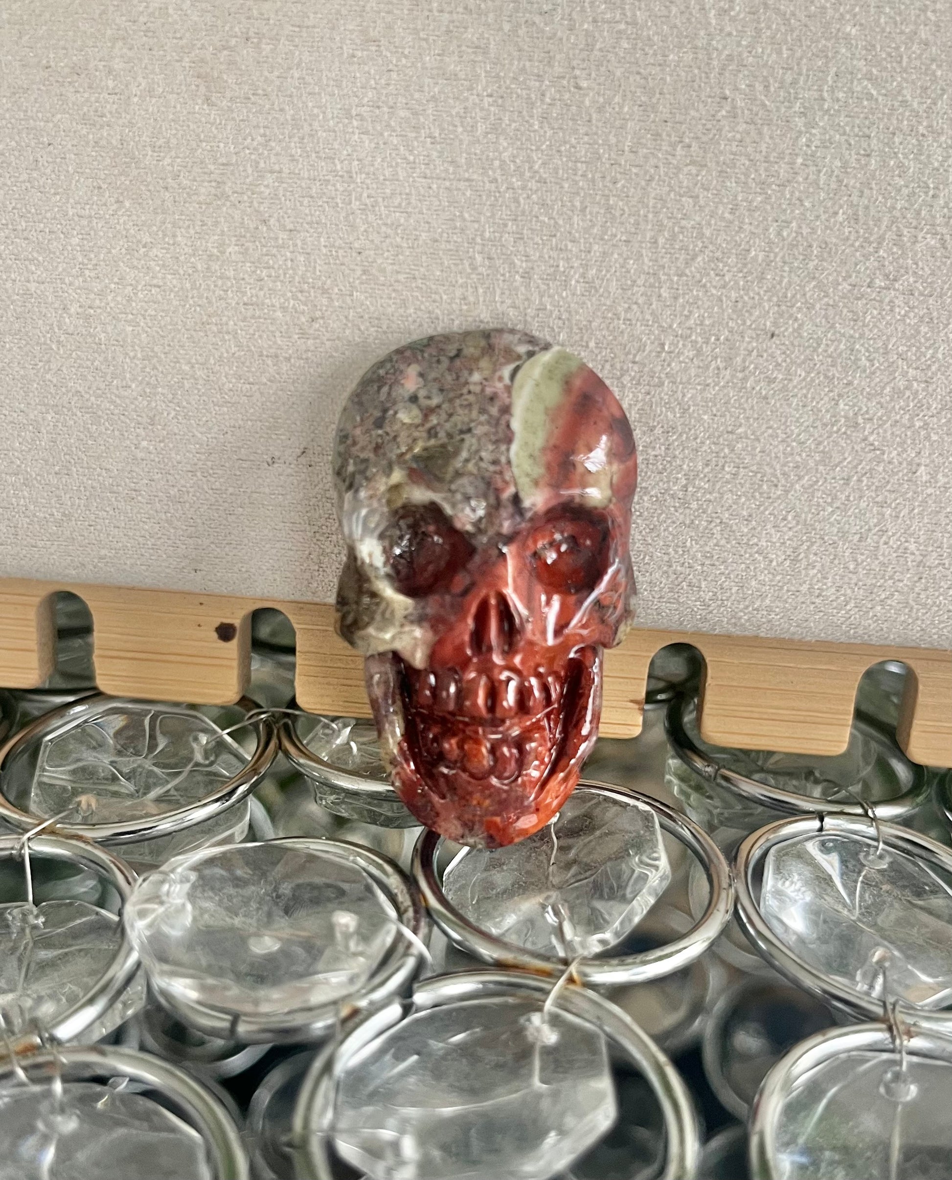 Each skull carving has unique fossilized patterns, making every pendant one of a kind. Once you choose your wire color, your custom pendant will be carefully handcrafted with attention to both detail and energy flow.