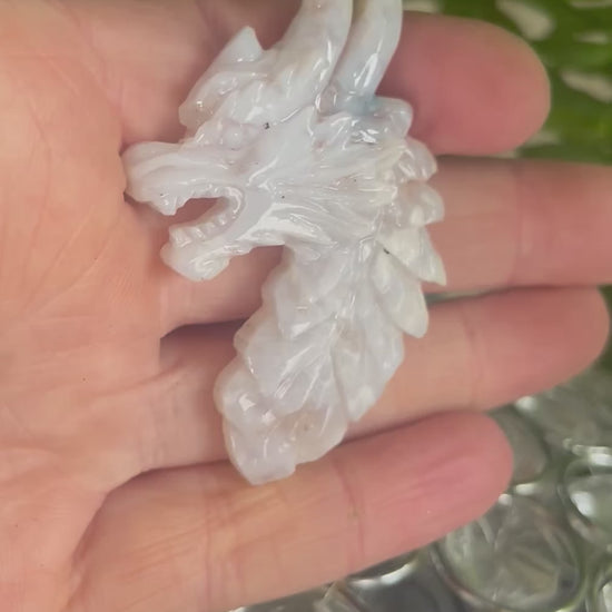 This palm root stone dragon has a beautiful mix of subtle shades of white and it is hand-wrapped, to order, in your choice of silver, copper, or black wire - allowing you to create a piece that perfectly matches your personal energy and aesthetic.
