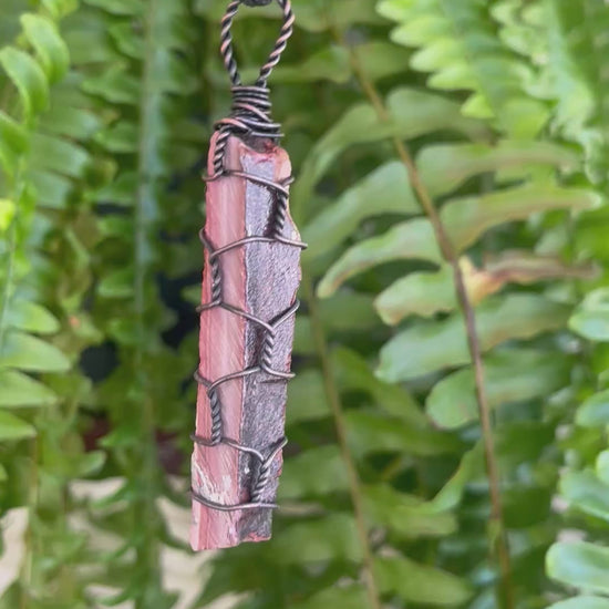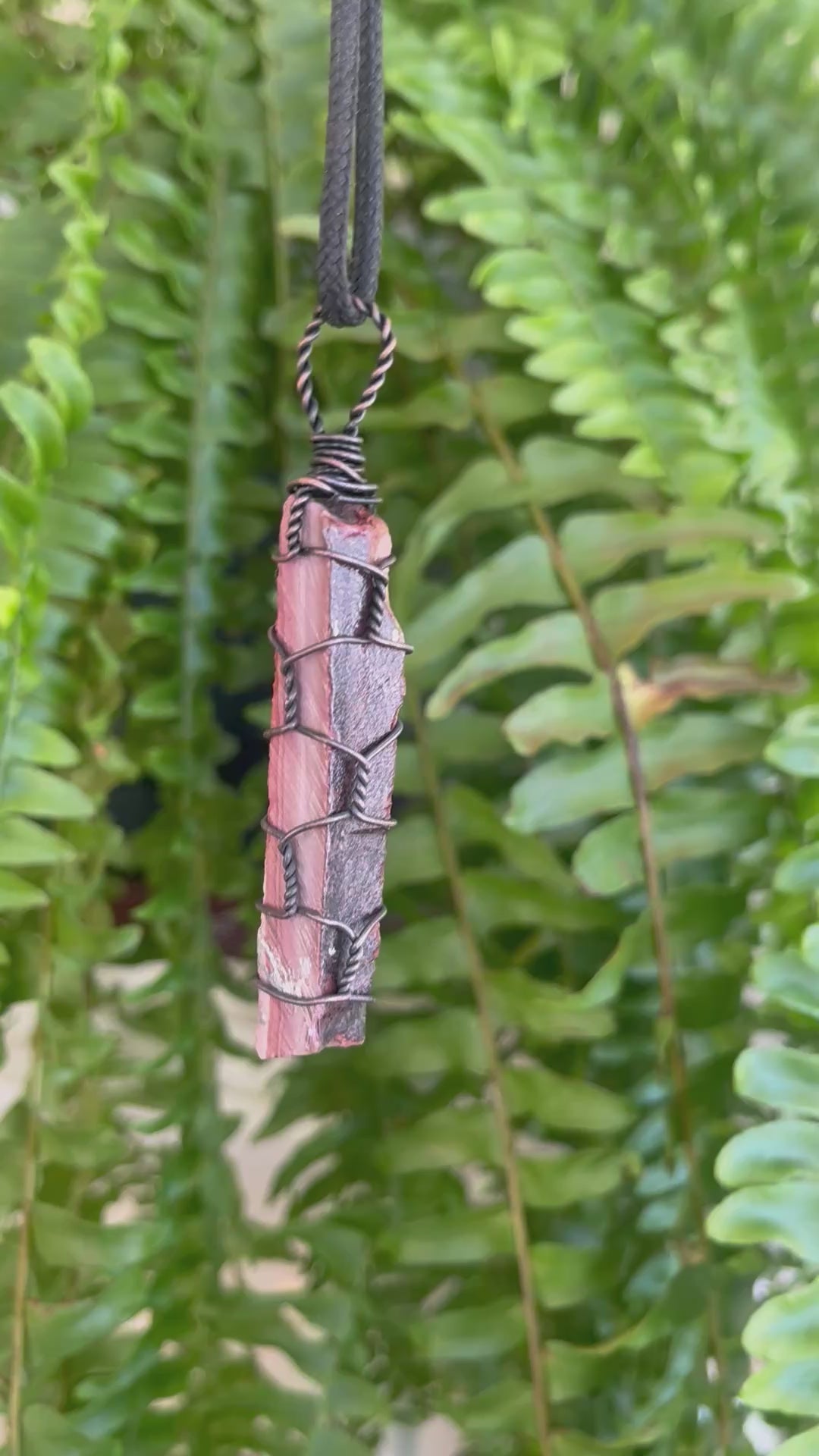 The organic shape, visible stone striations, and dark copper wire wrapping give this piece a rustic yet intentional feel—perfect for everyday wear or as a meaningful talisman. Each pendant is completely unique, carrying both the energy of the land it came from and the intention poured into its creation.